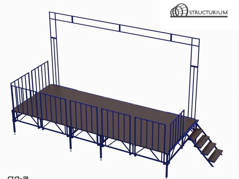 Подиум с перилами и каркасом под банер